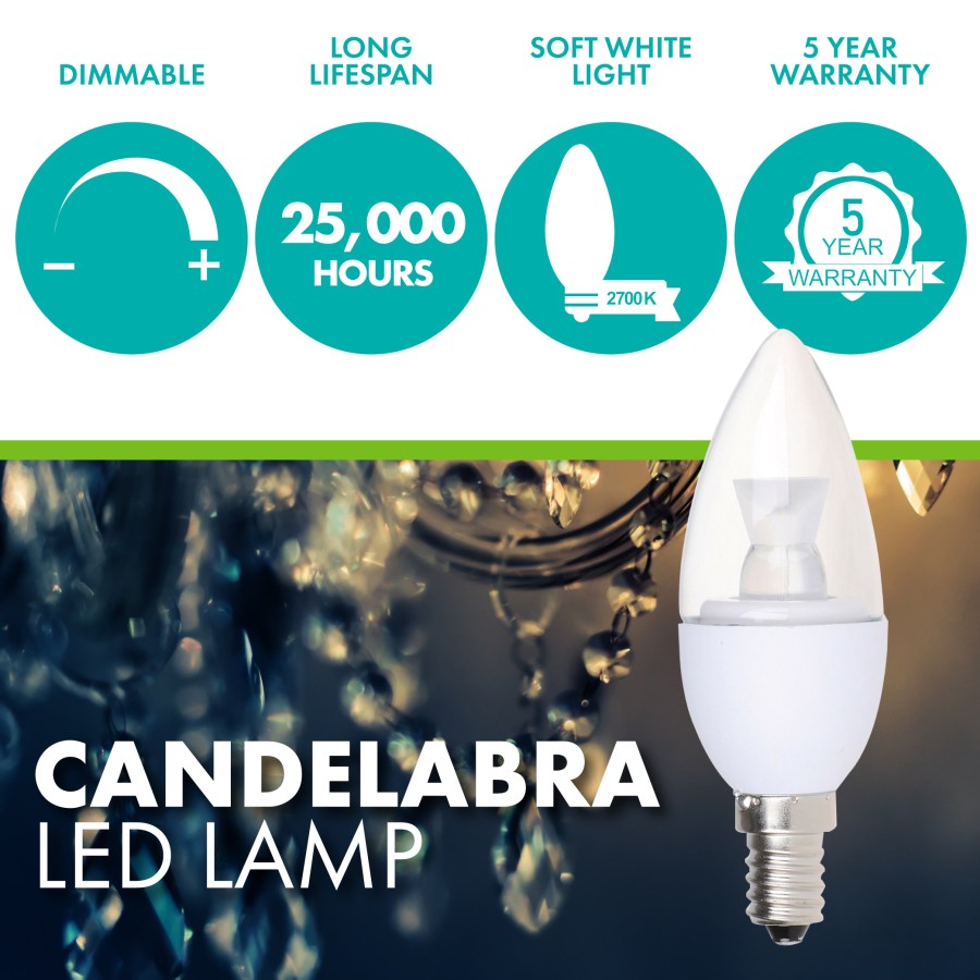 Simply Conserve 5W (40W EQ) E12 Clear Candelabra LED Light Bulb, 2700K, Pack of 60