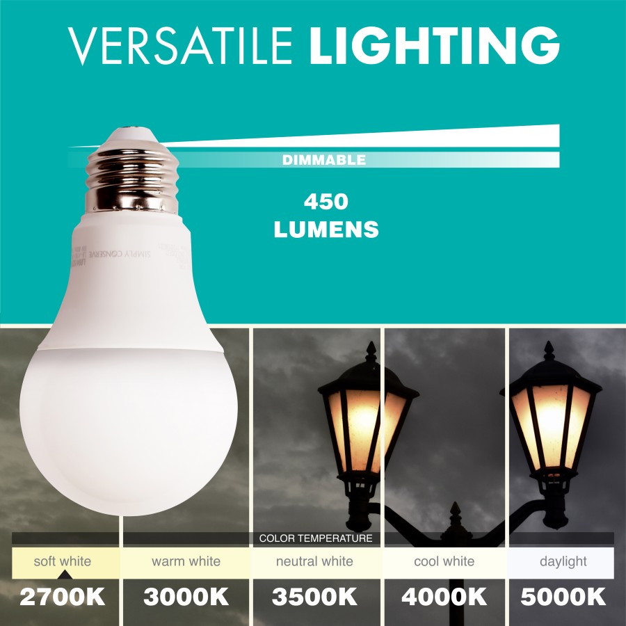 Simply Conserve 6W (40W EQ) A19 LED Light Bulb, 2700K, Maintenance Pack of 60