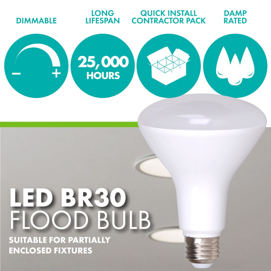 Simply Conserve 10W (75W EQ) BR30 Flood LED Light Bulb 2700K, Maintenance Pack of 24