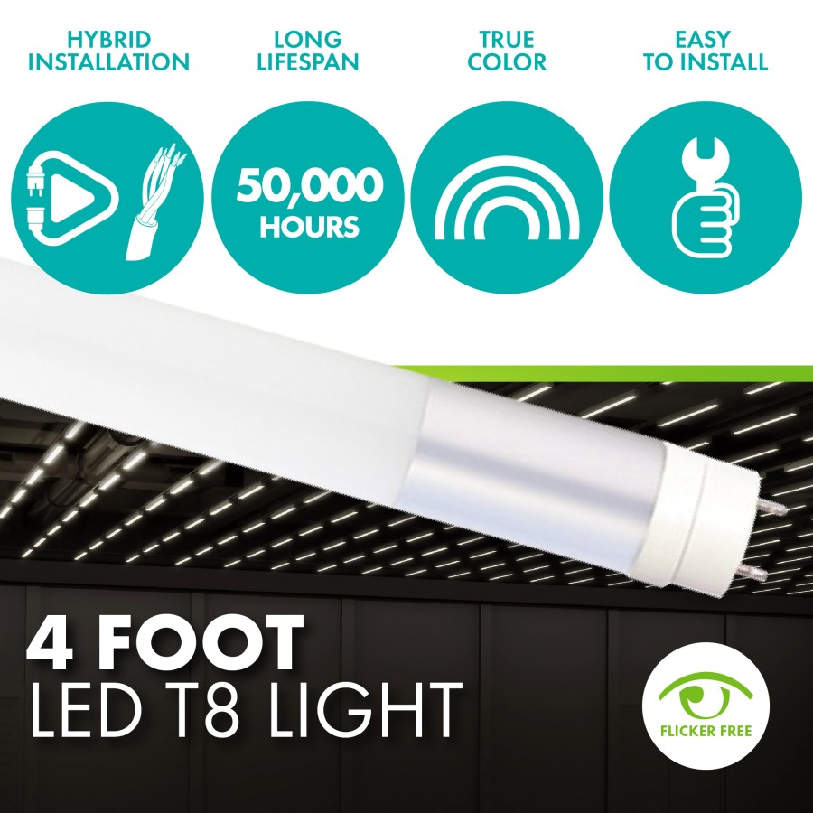 Simply Conserve T8 4-Ft LED Linear Tube, Hybrid Installation, 4000K, Pack of 10