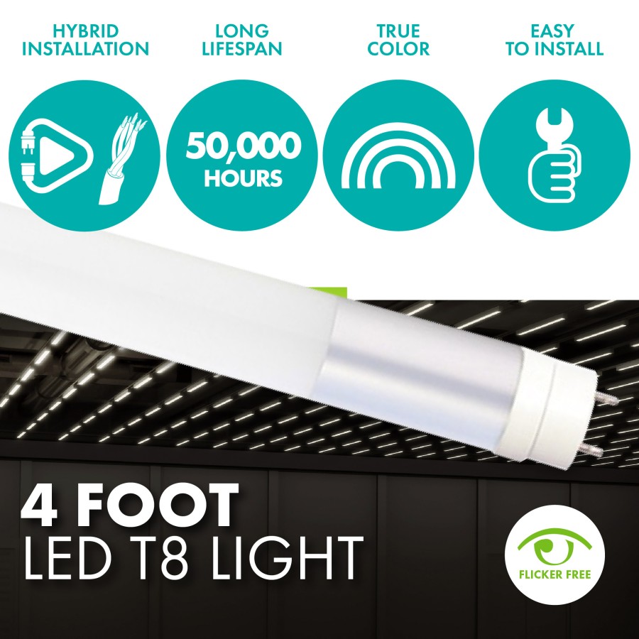 Simply Conserve T8 4-Ft LED Linear Tube, Hybrid Installation, 5000K, Pack of 10