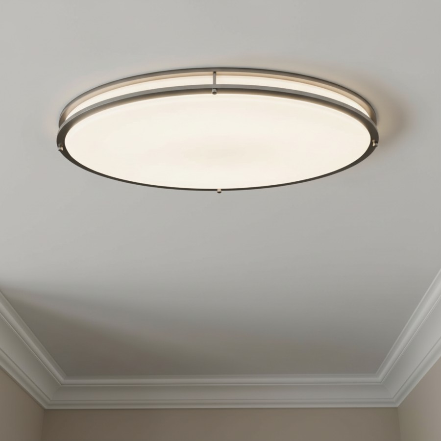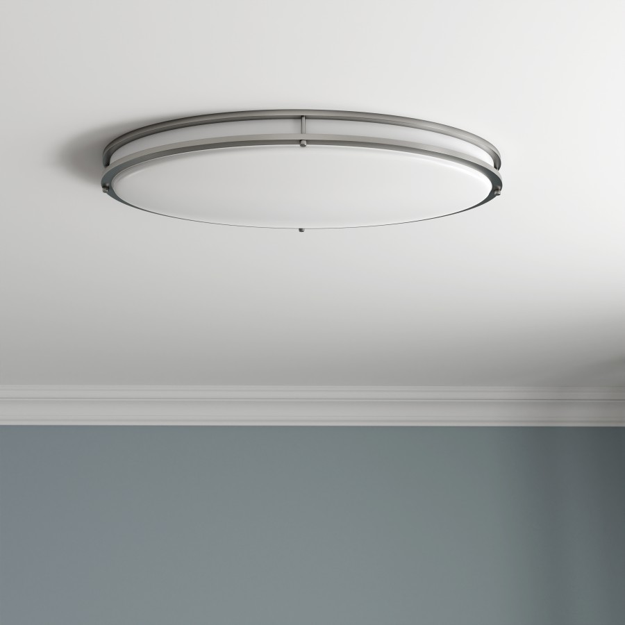 | This ceiling light features a white acrylic shade that beautifully diffuses light |