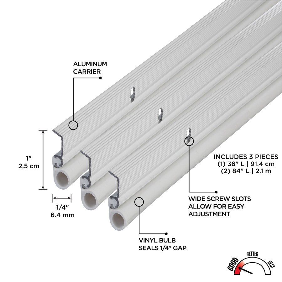 | Metal and vinyl, 3-piece door weatherstrip |